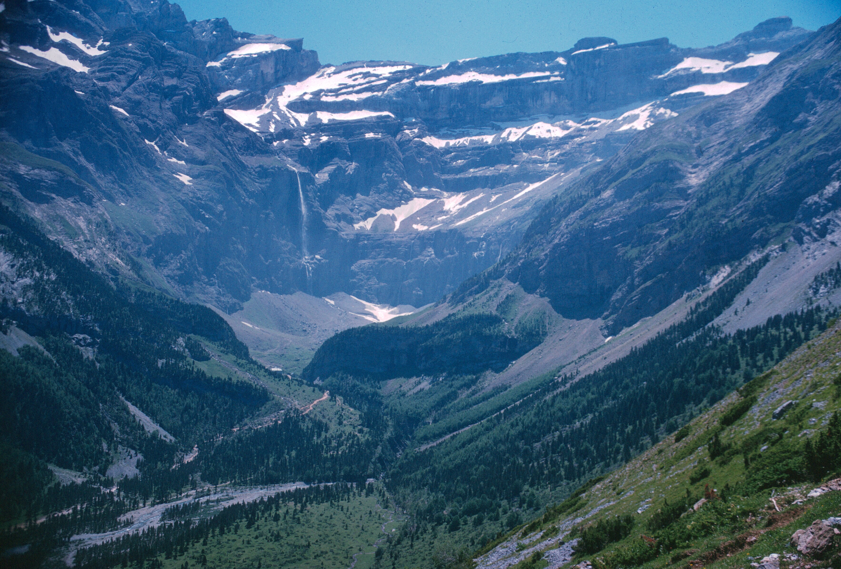 My French correspondent had not factored in difficient footwear nor large amounts of snow, and, though the canvas shoes were comfortable, neither they, nor the heavier work boots that Gaylord wore, were really suitable to the task. Most of the way from Góriz to Gavarnie I walked in the equivalent of wet tennis shoes! We should have suspected a lot of snow as we found the Río Ara with an ice bridge over it in the lower part of the canyon. Ice axes would have been handy. The previous winter had been a snowy one.