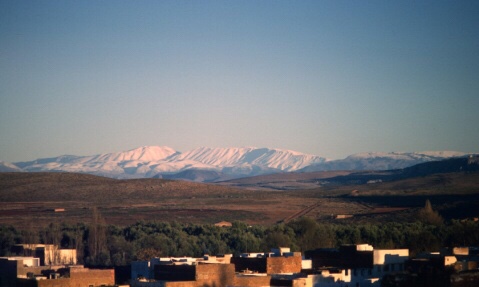 Bouiblane est visible également de la région de Fès. Je pouvais le voir de ma terrasse à Sefrou. C’était mon Kanchenjunga et Sefrou peut-être mon Darjeeling. Non pas la présence menaçante du Kanchenjunga des sœurs du Narcisse noir¸ mais une présence constante et rassurante. La montagne interpellait, et c’était impossible de résister à la tentation de la voir de près. À partir d’un belvédère à Ahermoumou, on avait une belle vue, mais au prix d’un tour en voiture.