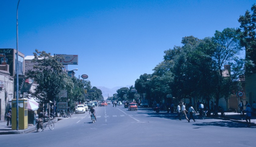 Reza Shah a fait construire de longues avenues qui percent les villes traditionnelles iraniennes. Photo prise à Yazd ou à Kerman, Iran, 1974.