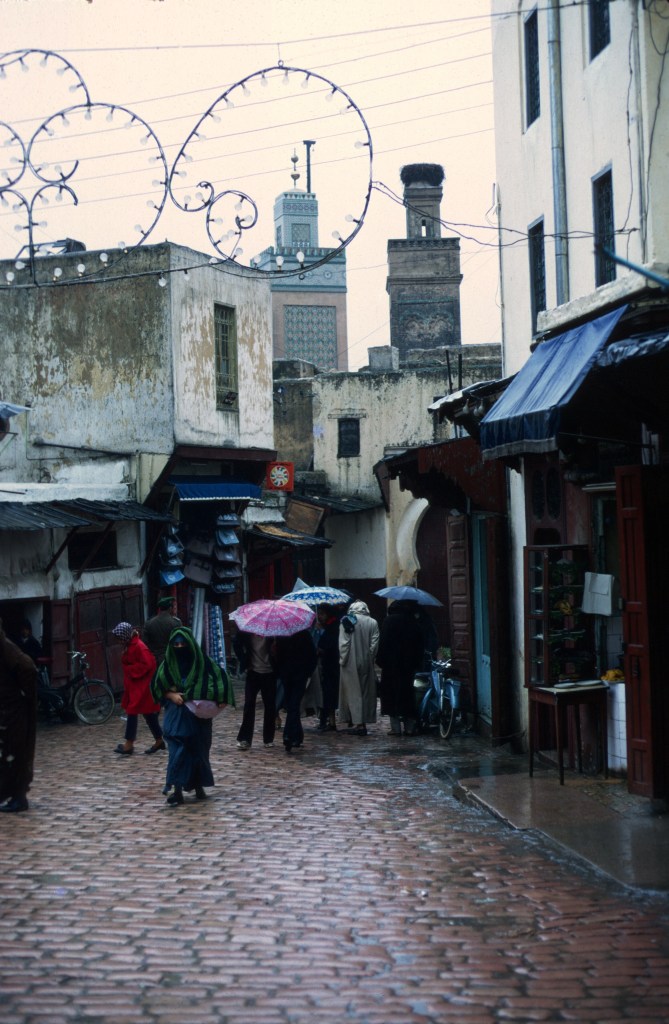 With visas in hand and vaccinations in various other parts of the body, Anne and I prepared to set off in March of 1971. Sefrou was cold and wet at the time. Bouiblane lay hidden in the clouds, and the drizzle kept the medina streets muddy. I don’t remember if there had been some snow in town, but there was snow across higher elevations.