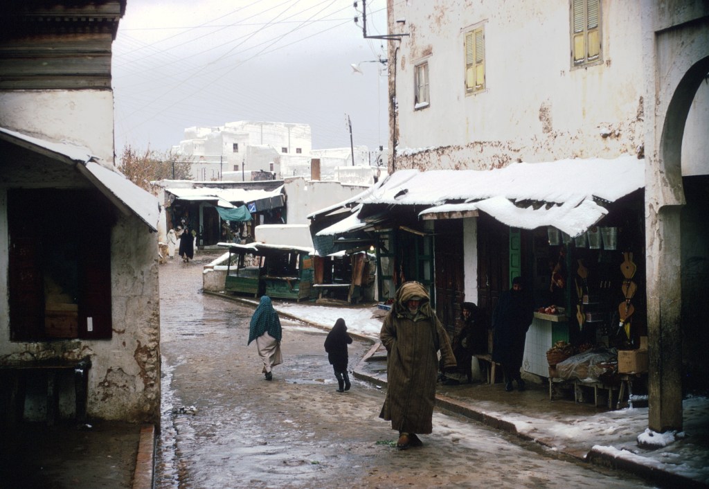 In Tlemcen, heavy snow had fallen and a visiting circus tent had collapsed when the main mast broke. We didn’t really sightsee there, though I would have liked to have explored the city. Tlemcen, the only Algerian city closely connected to Moroccan history, had substantial historical ruins.