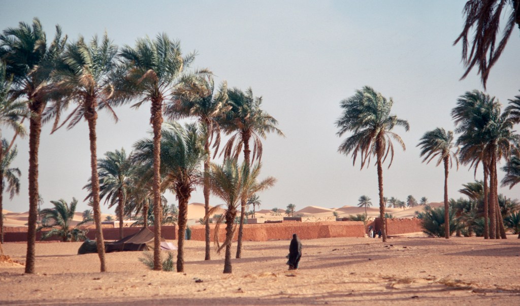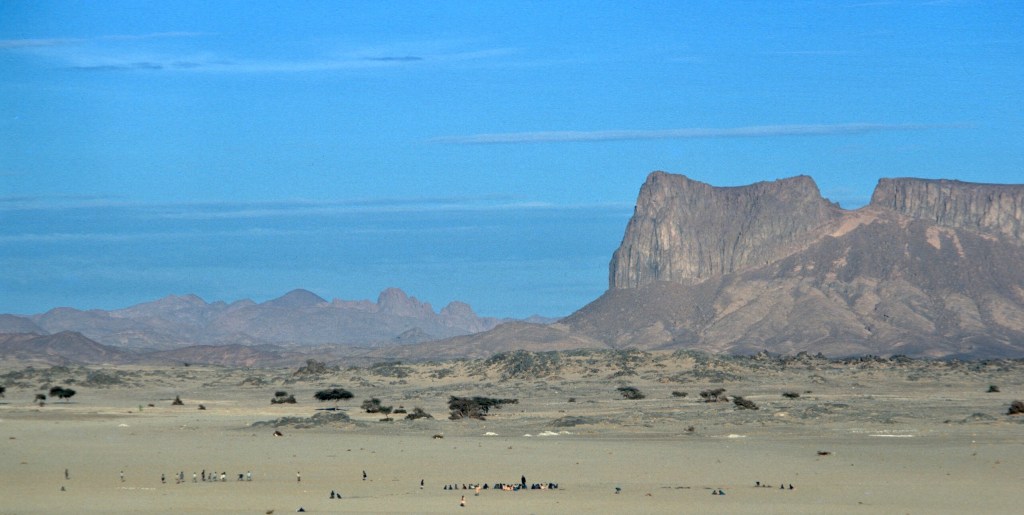 His name was Bou Baggara, as I recall. Perhaps he had a cow, though there wasn’t much grass around. Bou Baggara fancied himself a poet, and improvised for us. Since we had come from Morocco, one of his improvisations honored the Moroccan king, Hassan II. I don’t remember much from that night, other than the lamplight inside the small dwelling, the convivial conversation, and the cool desert air outside. We fell asleep in our sleeping bags under a bright star-filled sky.