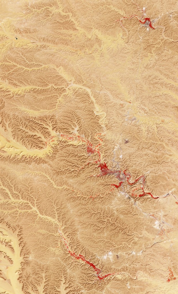 The Touat is a large group of oases and ksour in western Algeria, to the west of our route. The route from Béchar passes through them. Ibn Battuta crossed through the region on his way to Timbuctoo in the 14th century, remarking that the people’s diet consisted of dates and locusts. So did Leo Africanus, a Muslim refugee from Granada in Spain, who ended up as a Christian slave in the Vatican, given the family name Medici by the pope. Leo Africanus was a major source of information for European geographers. Amin Malouf, a Lebanese author who writes in French has written a wonderful fictionalized biography, Leon L’Africain, which has been translated into English.