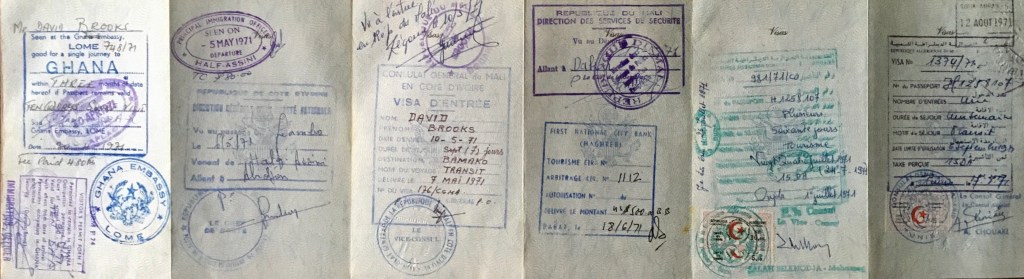 Hence, we went to the Nigerian Consulate in Casablanca for the necessary visa. As it turned out, Nigeria, smarting from its civil war, did not welcome us. International oil companies, Christian groups, and most Western Europeans had supported Biafra in its attempted breakaway from Nigeria. By January 1971, the war had been over for a year, and American sympathy for Biafra still preoccupied Nigerian officialdom. When we applied in advance for a visa at the Nigerian consulate in Casablanca, an interview with the consular officer began with the startling question, “You Americans don’t like Nigeria very much, do you?” He put it to us with a sardonic smile, and signaled that the rest of the meeting would be a waste of time. We were caught up in the politics of the time, and he would not grant us a visa. In retrospect, perhaps we should have tried a bribe. Could he have been fishing for one? We gave up with his refusal. Maybe it would have been possible to get visas for Nigeria in Niger, but we had given up in Casablanca and did not try.
