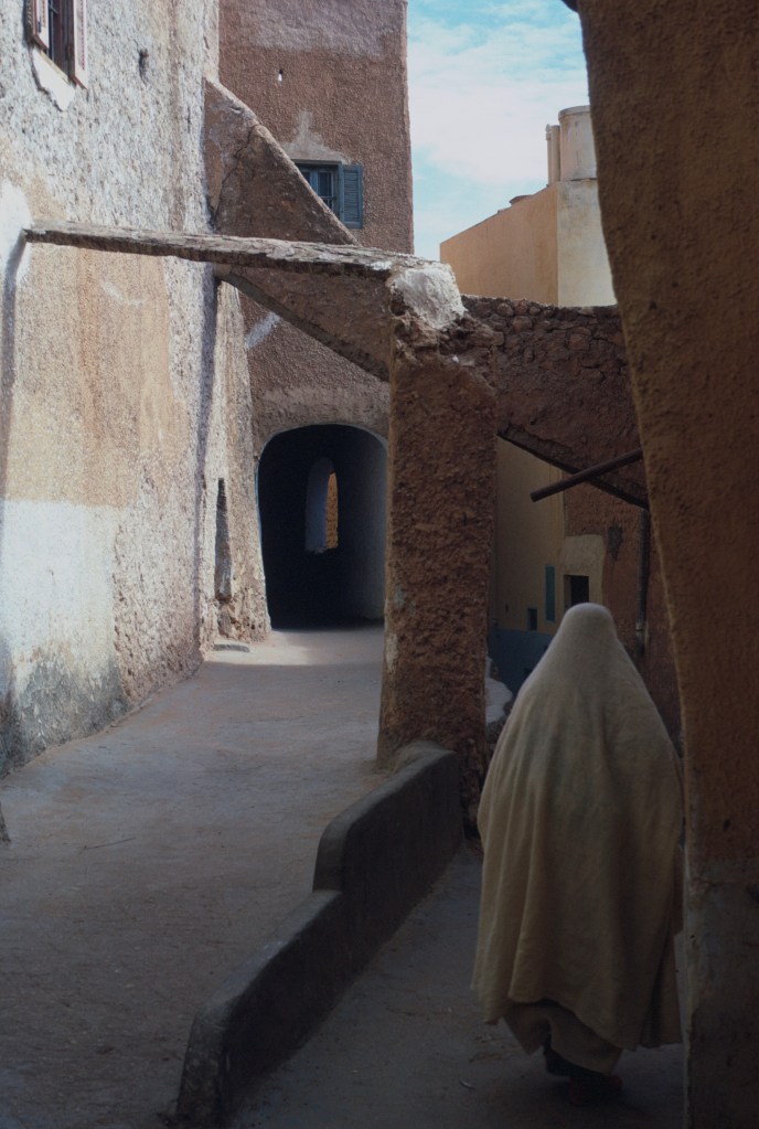 Located in an area named the M’Zab, Ghardaïa is one of five oasis towns inhabited by a refugee population of Ibadi Muslims, who follow a heretical sect and were forced to flee into the wilderness early in the history of Algeria. The French gave the Mzabis considerable autonomy when they ruled Algeria.