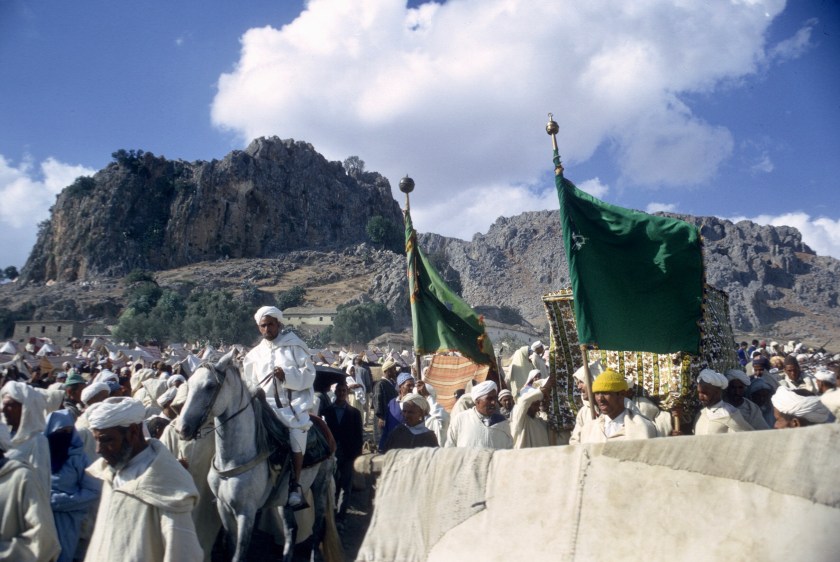Un moussem est un festival marocain, souvent centré sur la célébration annuelle d’un saint. Le terme saint, dans un contexte chrétien, peut évoquer un concept qui n’est pas tout à fait précis. D’habitude je me méfie des analogies religieuses parce qu’elles peuvent comporter un bagage d’information contextuelle qui est inapplicable ou fallacieux. C’est humain, je suppose, de prendre l’inconnu et de le placer dans un contexte qui le rend compréhensible, mais les apparences peuvent être trompeuses. Dans certaines parties du christianisme les saints agissent comme intermédiaires entre le fidèle et Dieu. En islam, du moins dans l’islam sunnite suivi au Maroc, il n’y a pas de place pour des intermédiaires. Le lien entre le musulman et Allah est direct.
