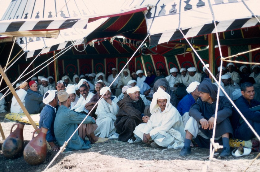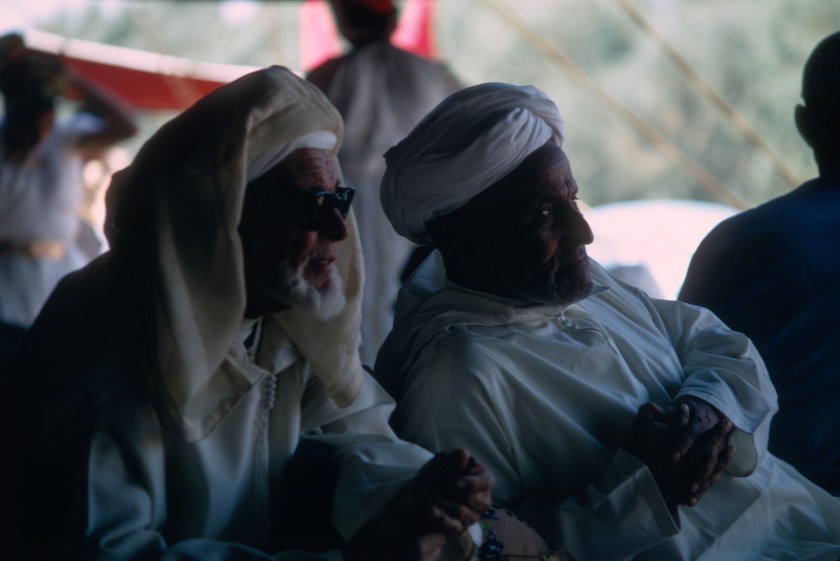 Les moussems importants étaient de grands rassemblements, des événements où le gouvernement se plaisait à se faire voir. On y trouvait d’habitude des tentes pour des hauts fonctionnaires du gouvernement et des notables locaux, d’autres pour le divertissement comme la musique et des danseurs, et pour la nourriture. Étant donné la nature religieuse de l’événement, la danse me semblait incongrue. Des femmes qui dansent en public sont considérées comme des prostituées. Les tentes du gouvernement, par contre, se trouvaient loin du tombeau.