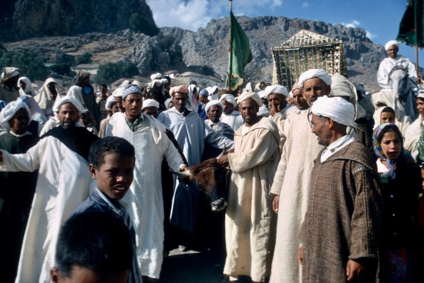Quand notre groupe de volontaires était en formation à Hemet en Calfornie, nous avons visionné un film documentaire en noir et blanc sur l’islam, intitulé, si ma mémoire est bonne, Au nom de Dieu. Le film avait été produit pour la télévision et j’ai beau essayer de le retrouver, je n’ai pas eu de succès. Je ne me souviens pas si le Maroc était le décor du film ou si seulement quelques-unes des séquences y étaient tournées; je crois que c’est le premier, mais certaines des scènes ont bel et bien eu lieu au moussem annuel à Moulay Bouchta.
