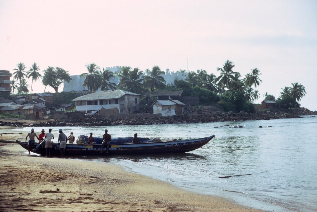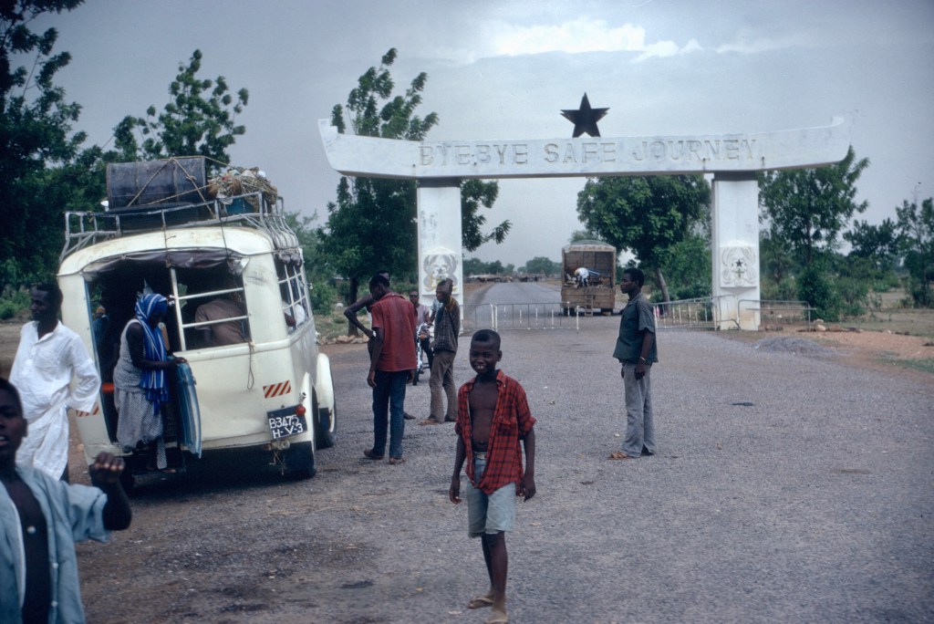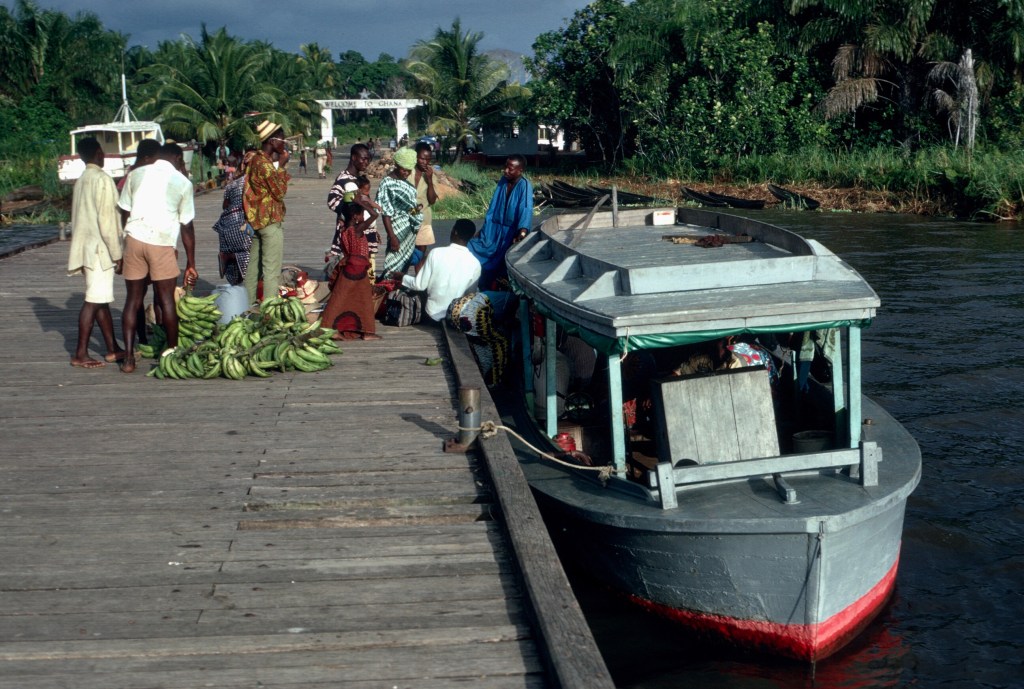 We finally left Accra by lorry for Dixcove on our way west. Continuing along the coast, we left Ghana at Half Assini, traveling on a mail delivery van, and entered Ivory Coast by crossing a small river to the town of Frambo.