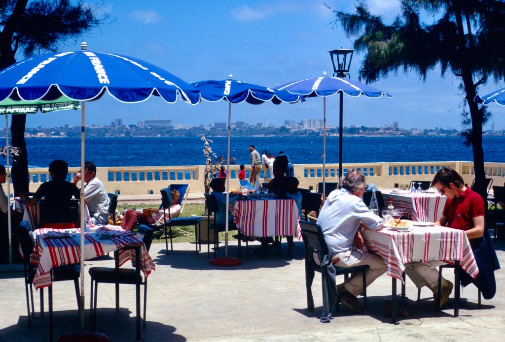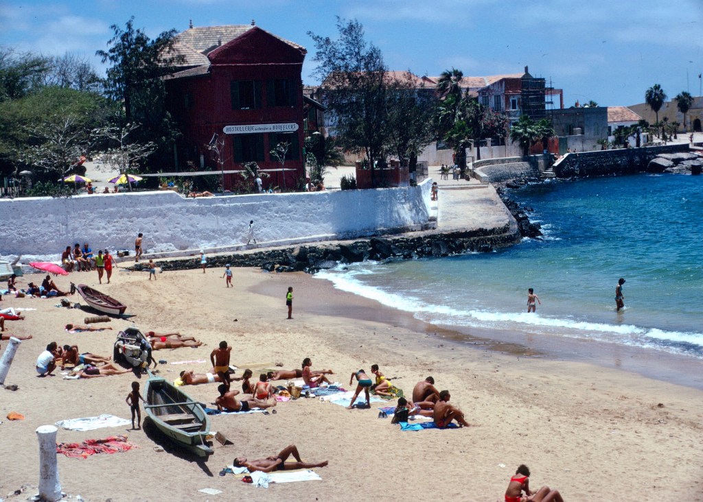 The small island, about a mile offshore, has hotels, cafés, and a beach as wll as some historical sites. We ignored the latter, favoring the cafes and the beach, which appeared to be frequented mostly by Lebanese citizens of Senegal. The beach excursion turned out to be a bit of an ordeal. There were large waves in the small harbor, and I had trouble swimming back to shore after going out to a raft. Both of us, out of the sun for two months, foolishly stayed in it all day long and got painful sunburns. The cold water showers of the old French hotel did not help sooth our pain, and I remember being surprised to feel so cold in the tropics, despite suffering the sunburn.