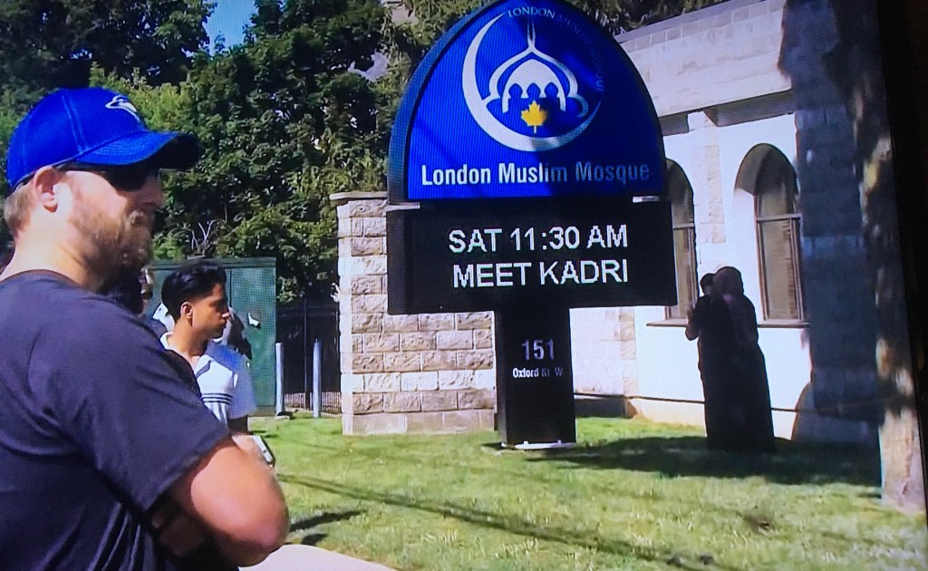 Traditionally, in the summer after the hockey season, every player on a Stanley Cup winning team brings the trophy to his home town for a day to show it off, and in Kadri’s case, the city was London, Ontario. The following photos, taken from the CBC evening news, The National, show Kadri bringing the trophy to his local mosque in London.
