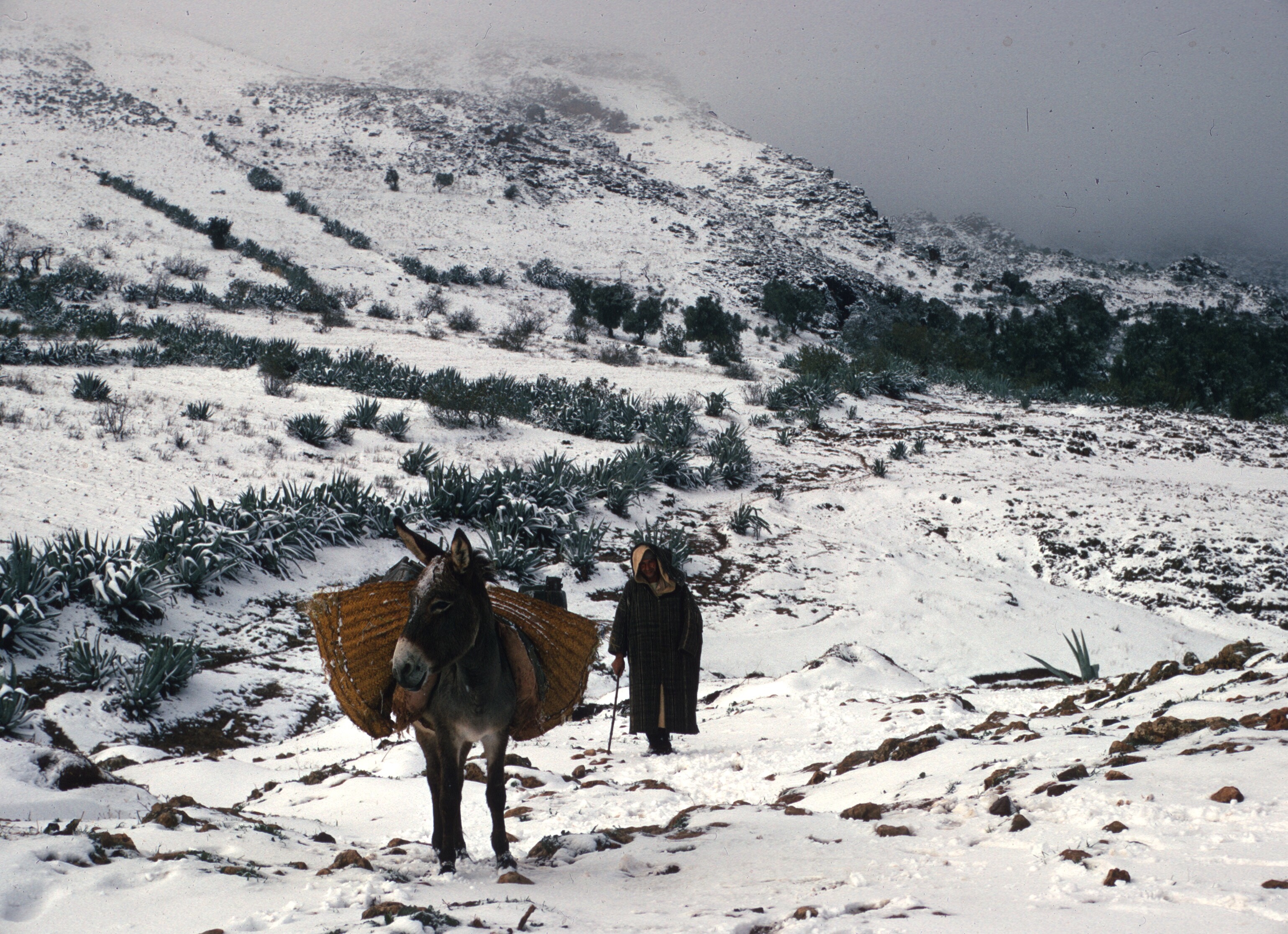 Sur un sentier entre Sefrou et Bahlil, après une rare chute de neige.