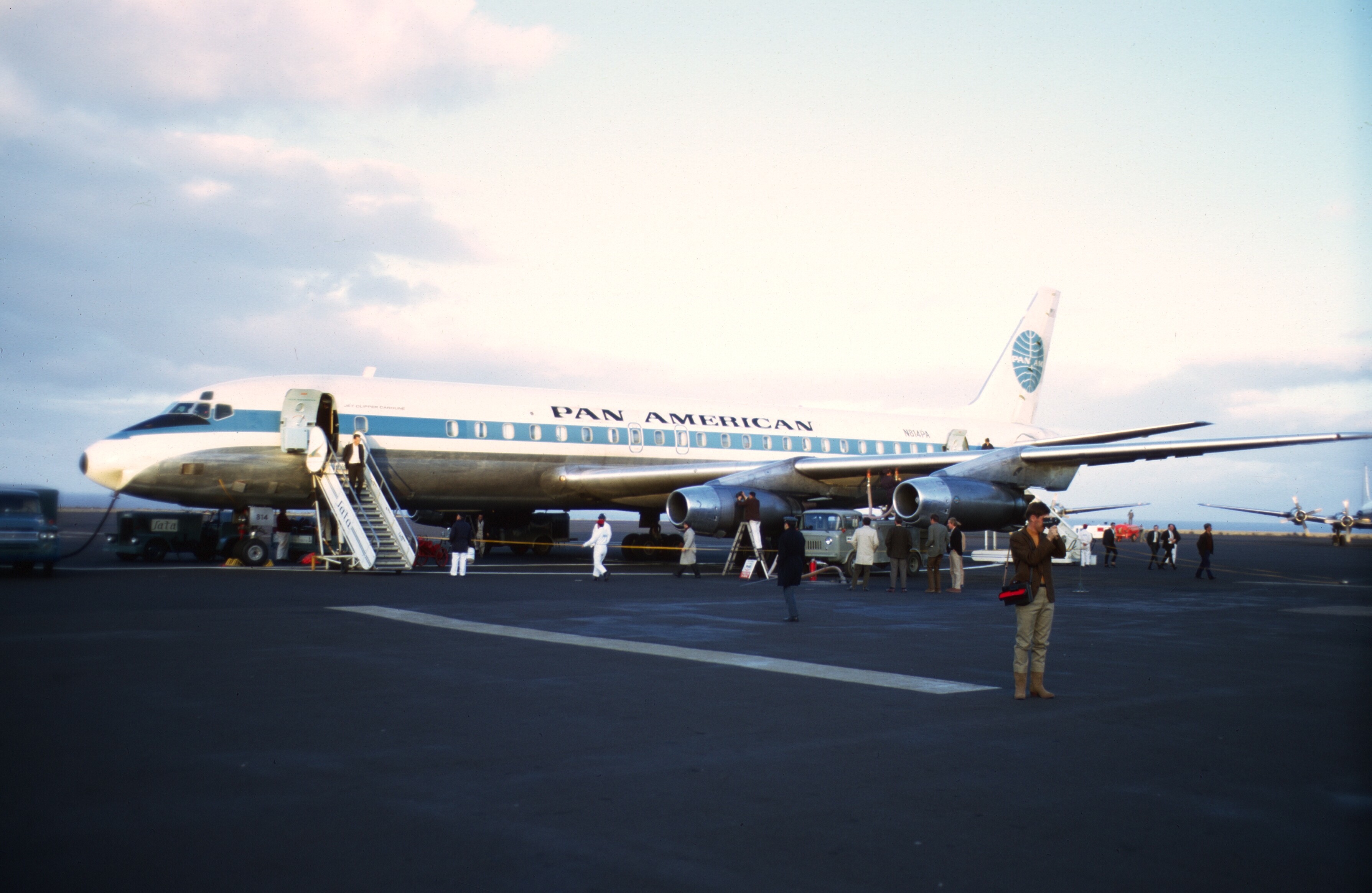 The Boeing 707 that brought Morocco X volunteers to Morocco. Taken at a mid-Atlantic stop in the Azores.