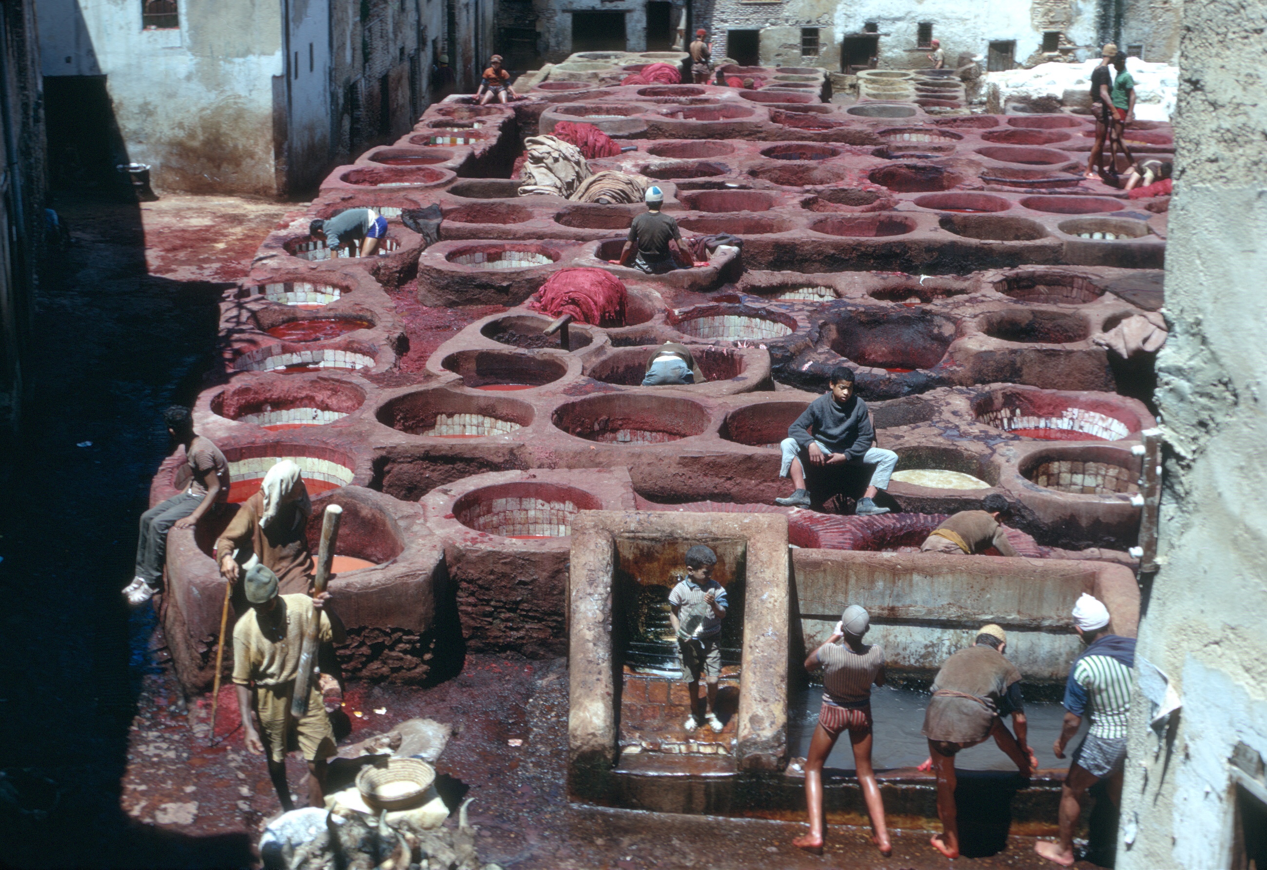 Fès, 1971. The tanneries, a major tourist attraction, are deep in the center of the medina.