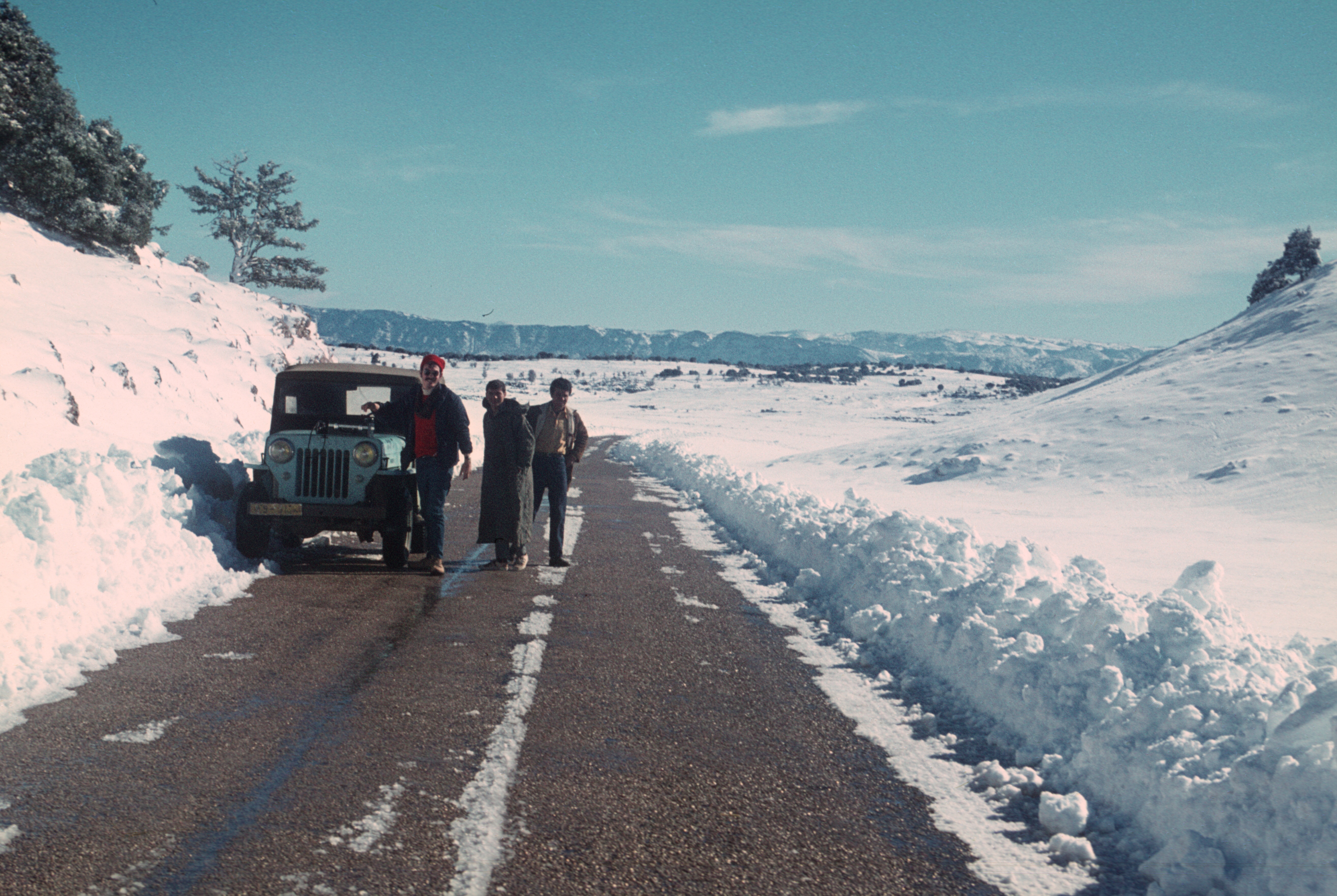 Sur la route de retour d’Imouzzer des Marmoucha, petit générateur Honda et projecteur 16 mm dans le Jeep, écran lié à son extérieur, où je venais de montrer des films agricoles une nuit froide de Novembre. Les neiges des hauteurs brillaient sous les étoiles, et les gens du pays étaient ravis de la séance, meme s’il ne comprenaient très bien l’arabe littéraire des films. Après tout, à cette époque, il n’y avait pas encore la télé dans cet endroit relativement isolé.