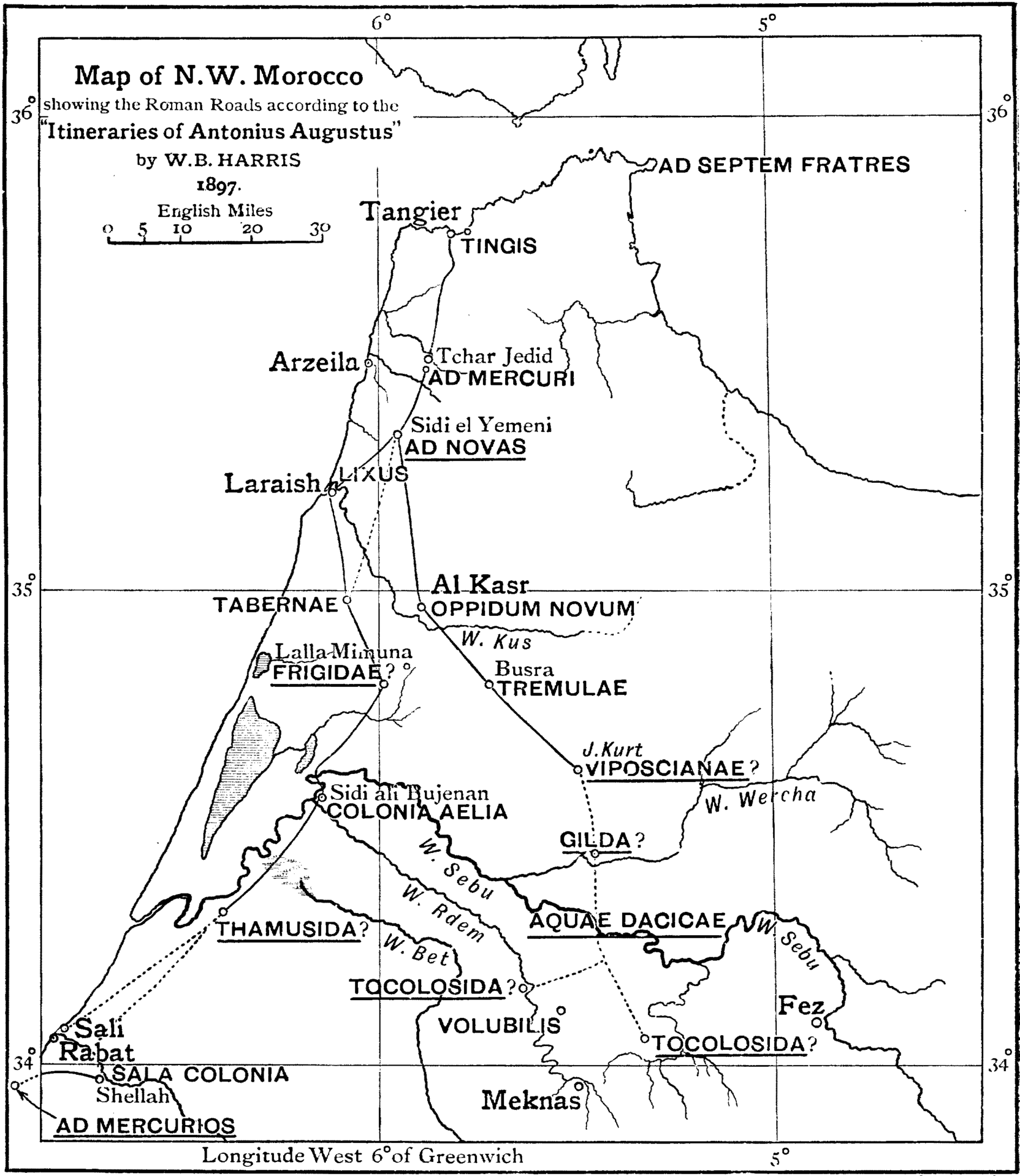 Le réseau routier du Maroc romain. Walter B. Harris (1866-1933); engraved by the firm Walker & Boutall [Public domain]