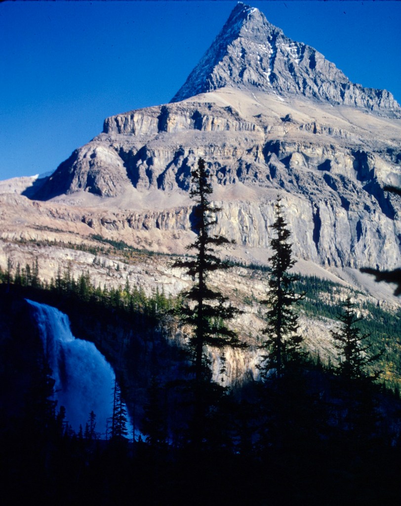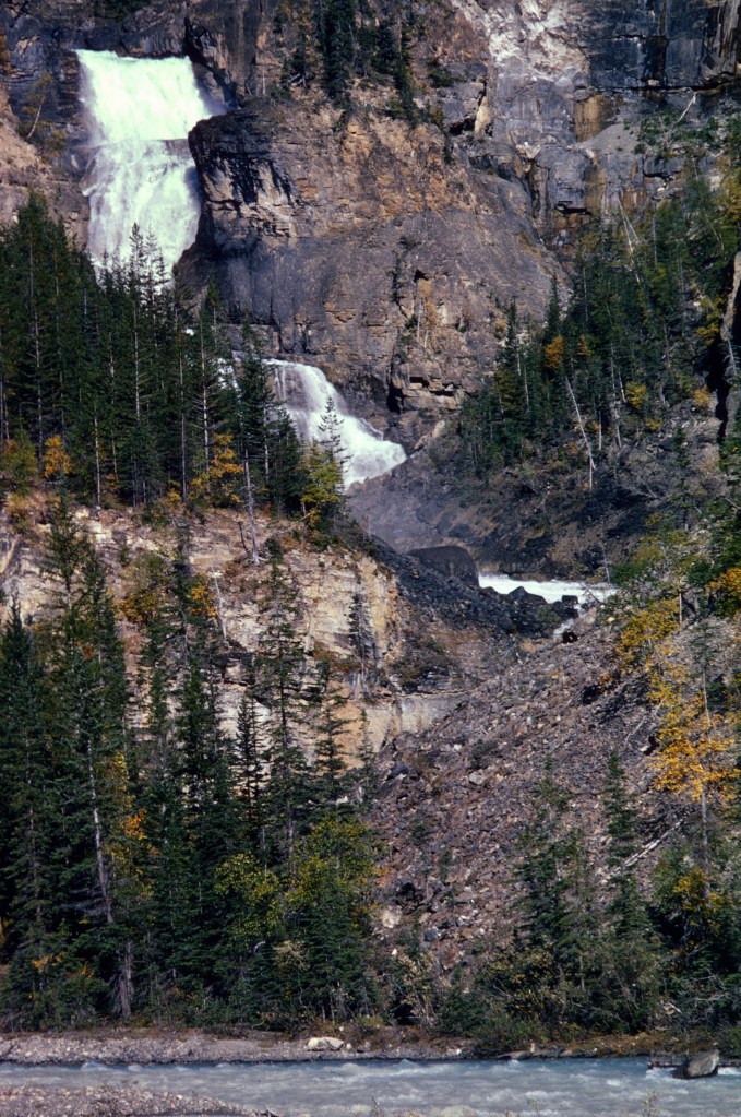 We passed the Emperor Falls, a spectacular waterfall, under the shoulder of Mount Robson.