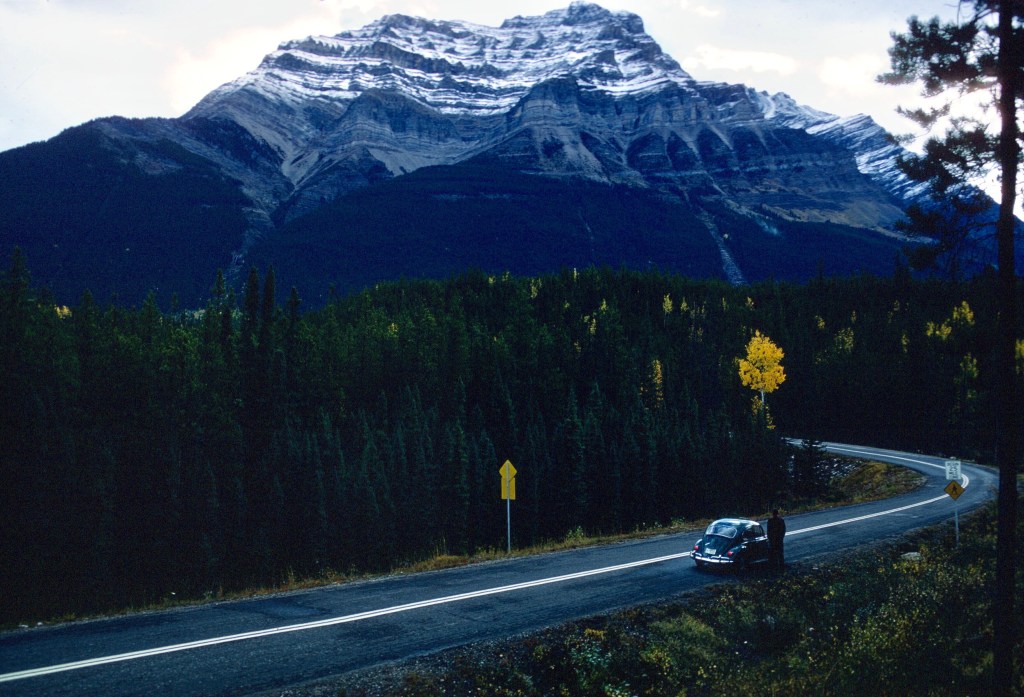 Great Falls is almost 600 miles from the town site where the CN train station is located. Jim’s quickest route was up to Calgary and through Banff Park and over the newly completed and spectacular Icefields Pakway. Our plan was to camp the night in Jasper, and leave early in the morning for Mount Robson. Though I was weary from a two-day train ride, I was excited to see Jim. Jasper’s air was fresh and fragrant, a great contrast to the Pullman car I had just left. The campground, within the Jasper town site, was simply a series of concrete slabs, with places to pitch tents, on the edge of a forest.
