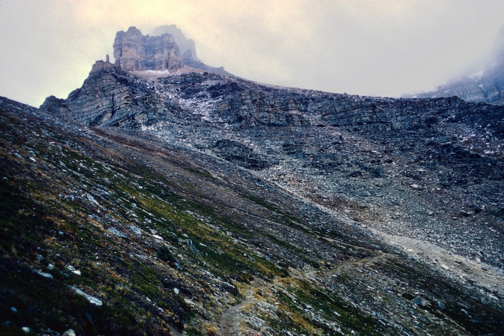 In the morning we hiked a bit further to get some pictures of Mount Robson’s face and Berg Lake. There was some haze, possibly from forest fires, a regular summer occurrence in the west, though not on today’s scale.
