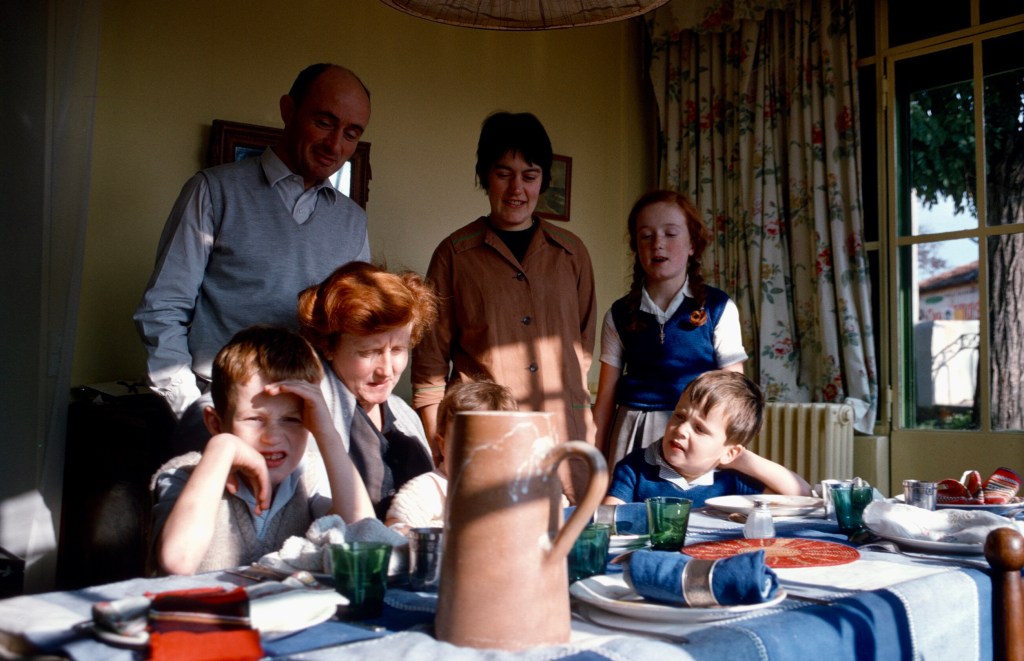 A typical colonial chalet-style dwelling in Ifrane, surrounded by cloud-enveloped cedars. 1969.