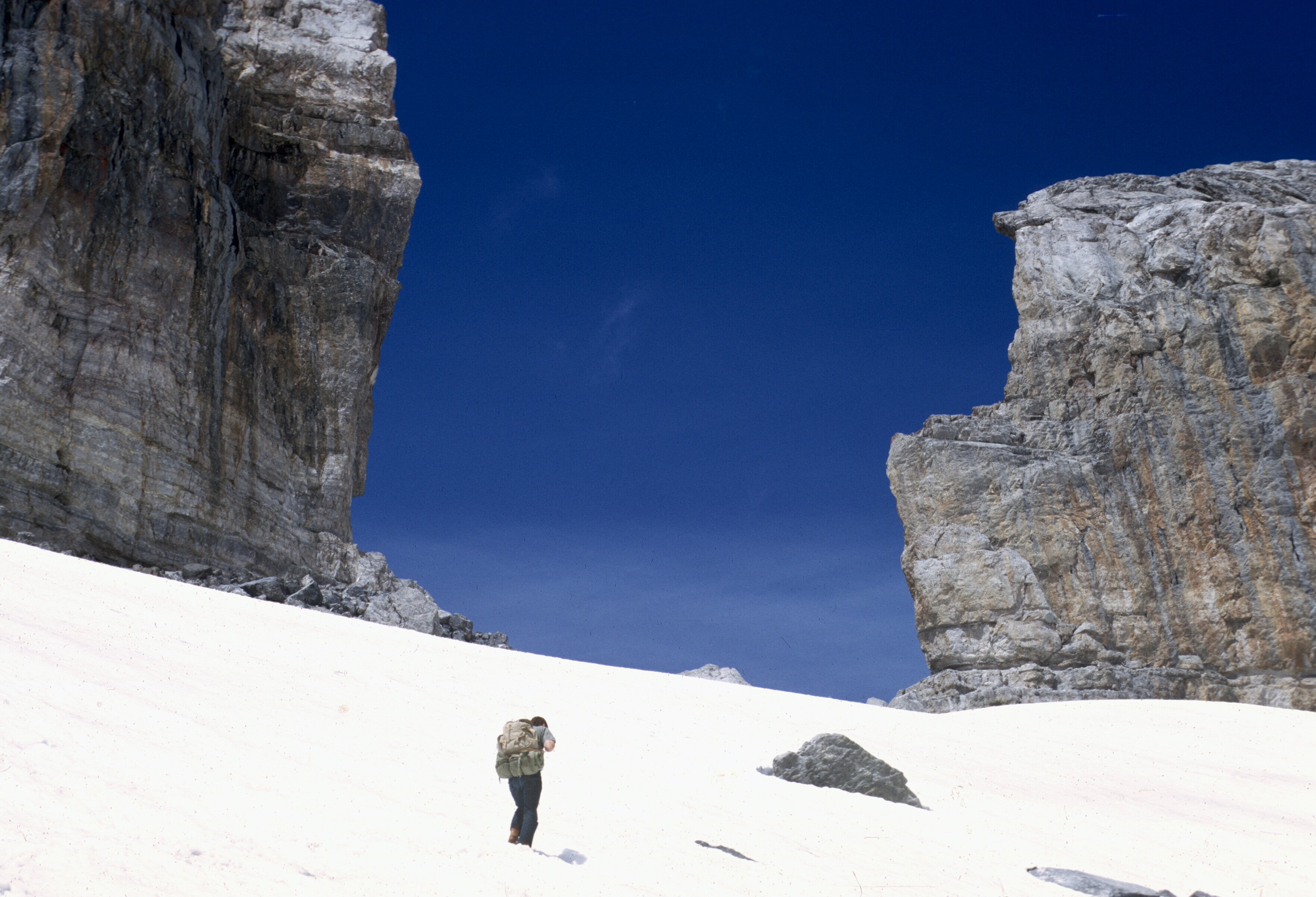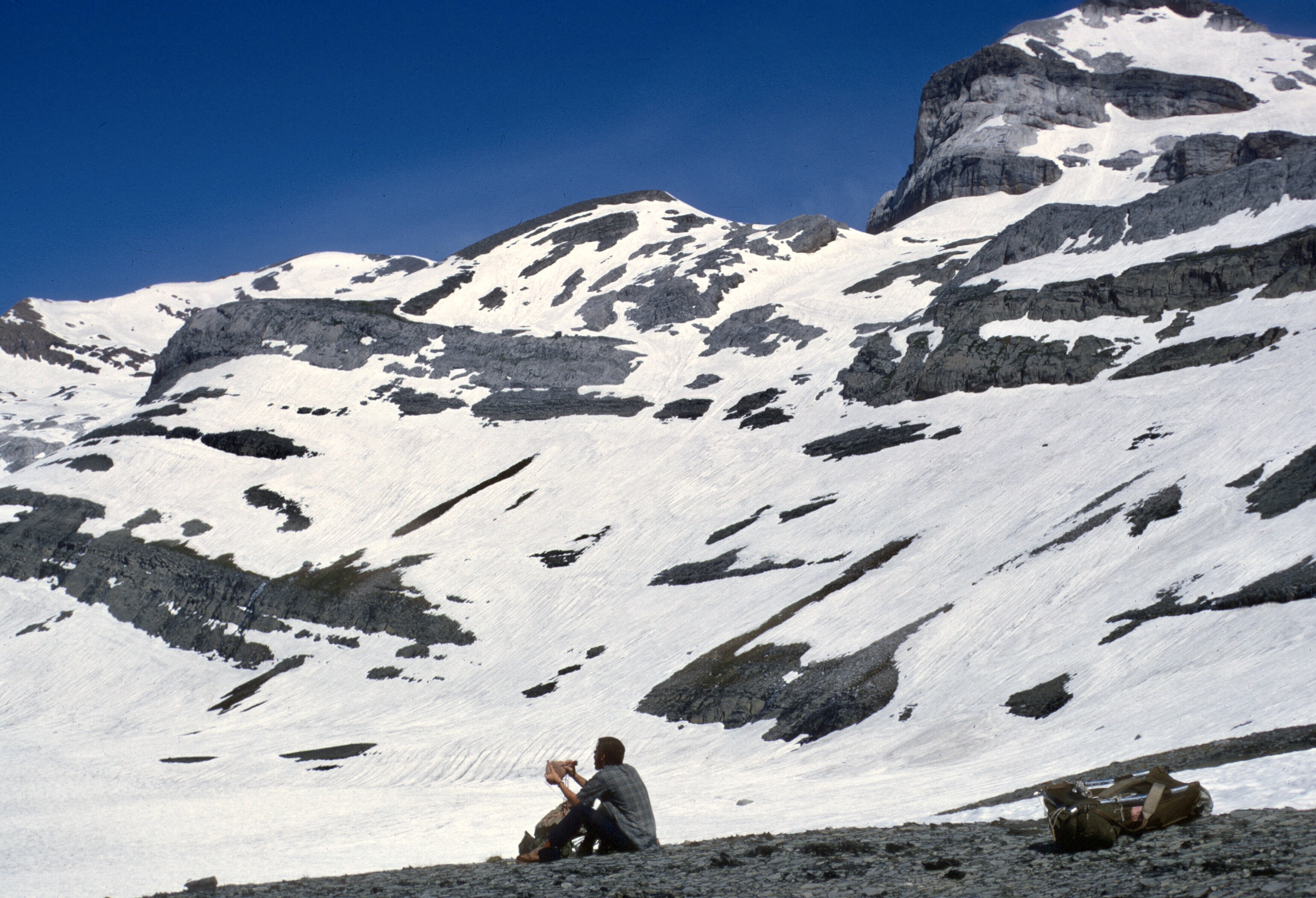 One of the towers in the National Park of Ordesa. Spain, 1969. The Pyrenees have several national parks on both sides of the frontier.