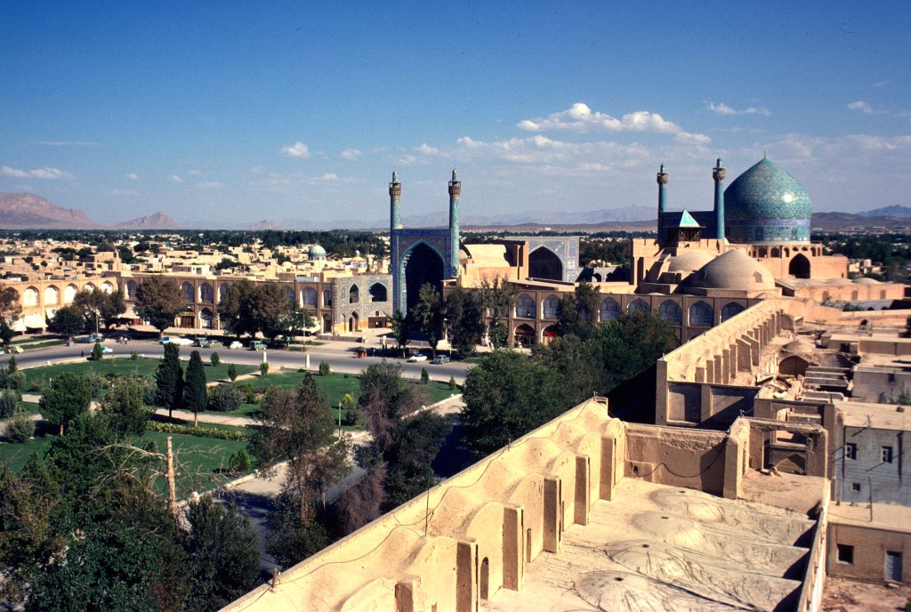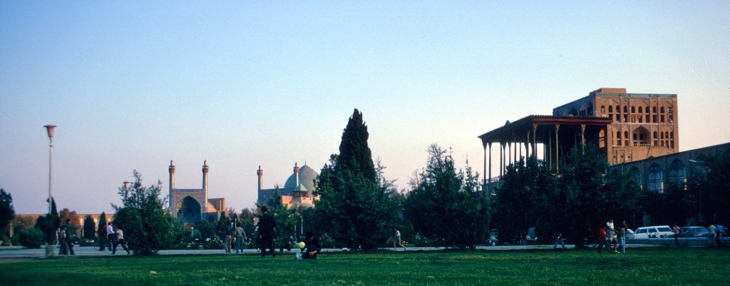 The maidan and royal palace in Isfahan, the capital of the Safavids, in the setting sun.