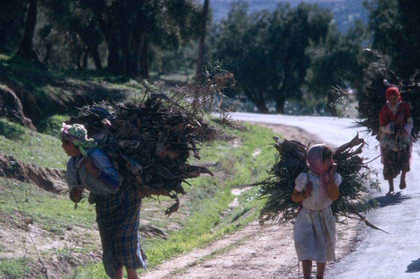 Ce passage me rappelle les énormes fardeaux que les femmes rurales portaient au Maroc. Arrivées à la vieillesse, beaucoup avaient le dos courbé de façon permanente. La vie n’a jamais été facile pour les paysans pauvres et leurs familles, et les hommes comme les femmes s’épuisaient à subvenir aux besoins de leurs familles. Les sécheresses étaient fréquentes, le temps souvent trop chaud ou trop froid et les récoltes imprévisibles. Exploités par les commerçants des villages, maltraités par les autorités, n’ayant pas accès à des soins de santé adéquats, les paysans les plus pauvres subsistaient de peine et de misère avec un stoïcisme qui m’étonnait. J’étais en admiration devant leur courage indomptable.