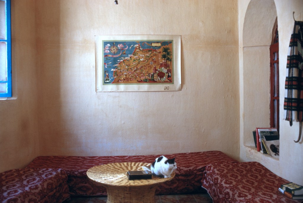 The mattresses on the banquettes were stuffed with halfa. They were hard, but people seldom slept on them. This was Gaylord Barr’s room in the front of the house. The windows looked out on the street below. Meals were often around the reed table. More on reed furniture in another post.The other side of the room, pictured above, is where Gaylord had his bed. My room on the other side of the house had no exterior windows. Note the picture of JFK on the wall and the hanging bota, a souvenir from northern Spain. Volunteers in big cities usually lived in newer, more European style buildings. My house for example did not have a kitchen, and the room that served as a kitchen did not have water. We made it work perfectly, mostly with Khadija’s hard work.