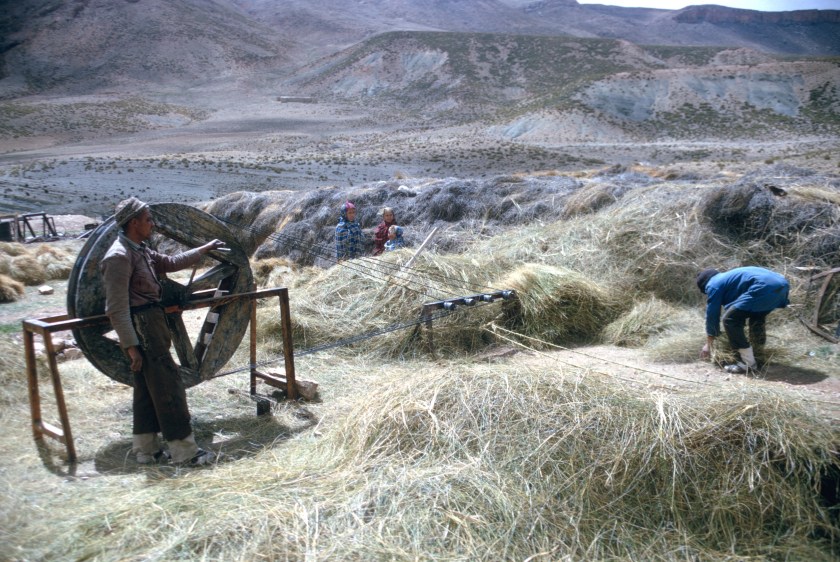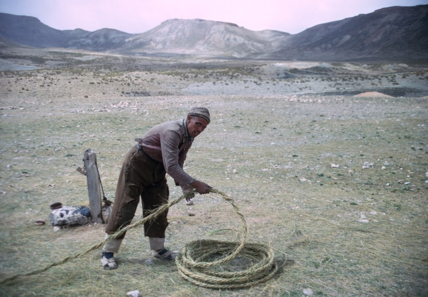 Either on the way to Jbel Ayachi in the spring of 1970, or on the way back, we noticed some rope makers, probably near Missour, and we took some photos of the process. As synthetics and plastics have today replaced fiber ropes, the little factory is a reminder of a traditional and sustainable industry.