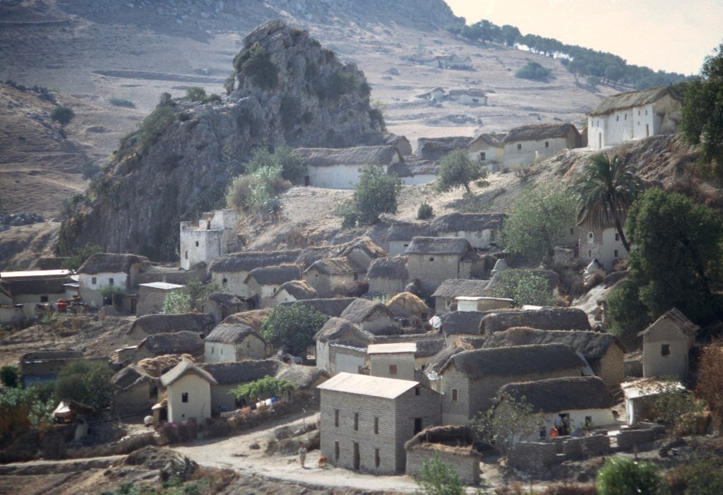 Moulay Bouchta, circa 1970. Une histoire autour du saint raconte que, à cause d’un délit commis dans le passé, les habitants ne peuvent pas blanchir leur maison comme c’est la coutume dans les régions urbaines. Je me pose des questions là-dessus, car les maisons sur cette photo sont typiques de la région et ne gagnent rien à être blanchies à la chaux, mais aujourd’hui les nouvelles constructions sont généralement blanchies dans le nord du Maroc.