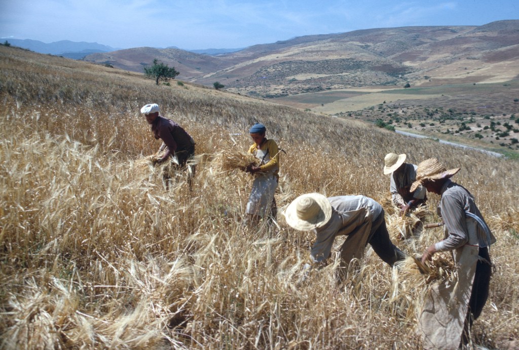 Dans des régions vallonnées comme le pré-Rif, on trouve couramment les oliviers parce que leurs racines profondes permettent à ces arbres de survivre aux longs étés chauds et secs. Cependant, ce sont les céréales qui constituaient la culture de base de ces agriculteurs, et ces cultures dépendaient d’une bonne quantité de pluie au bon moment.
