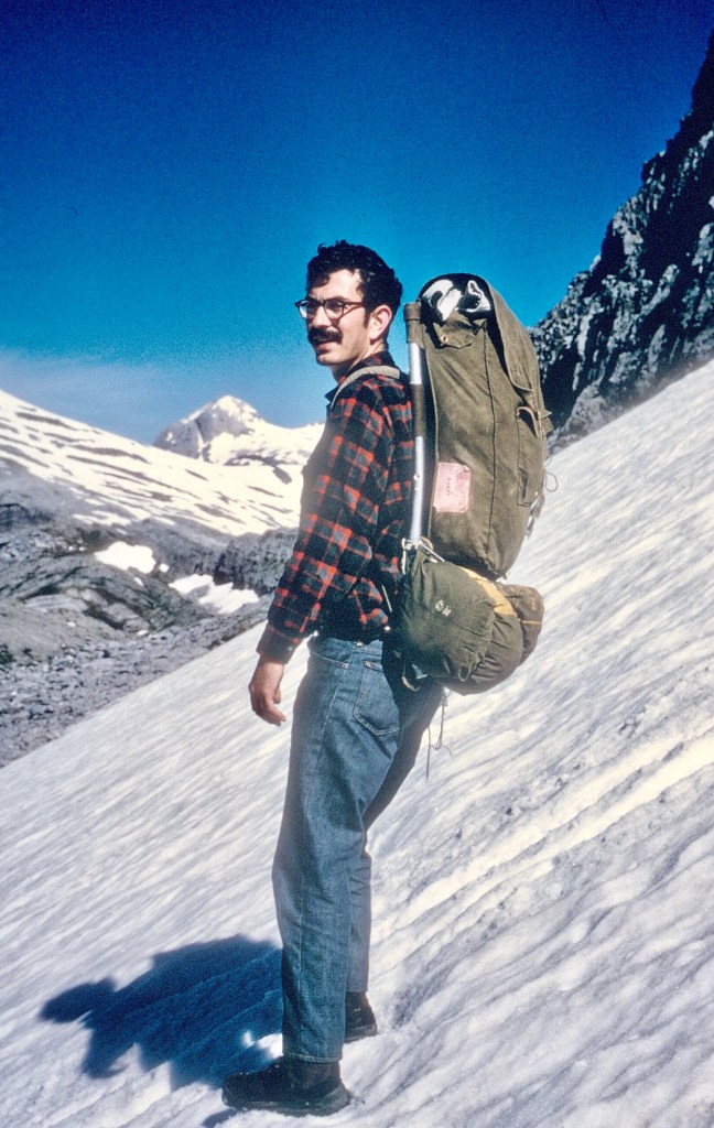 Louden Kiracofe, son piolet à la main, au couloir « de glace. » La montagne n’a pas voulu. Juillet 1969.