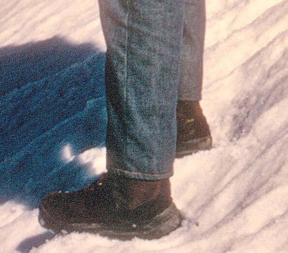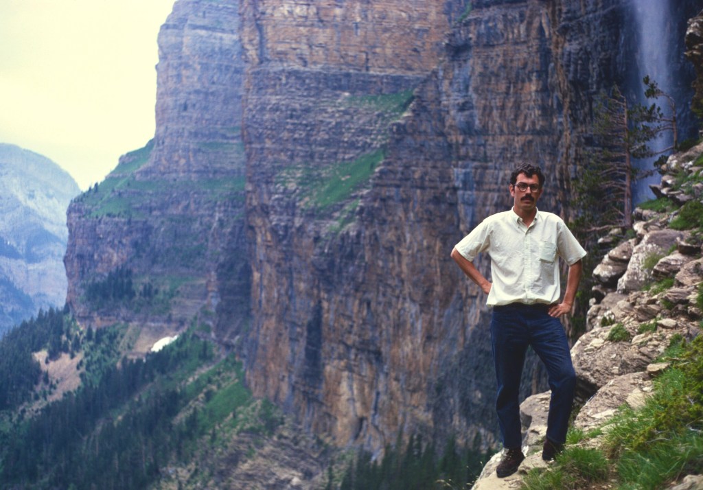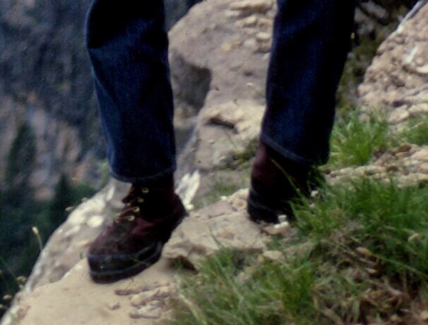 Trying out my new rope-soled canvas shoes, and trying to heal my blisters. In the canyon of the national park of Ordesa. Today it is a World Heritage Site. Photo: Gaylord Barr.The canvas shoes.