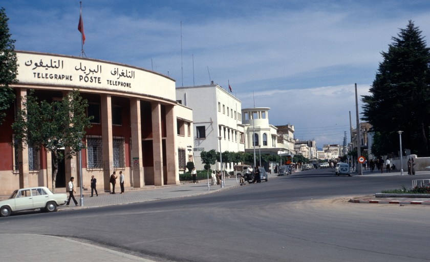 Si on n’était pas pressé, les cars de la CTM coûtaient moins cher, mais affichaient souvent complets. Un jour, descendu à Fès, j’ai trouvé le car pour Rabat complet. J’ai alors acheté un billet pour le suivant, confié ma valise à la CTM, et je suis allé passer l’attente en rendant visite à un copain. Or, j’ai passé trop de temps, et j’ai raté le départ. Pire encore, ma valise n’était même pas fermée à clé, et mon passeport était dedans (c’est un signe de la confiance que j’avais en la CTM, mais ce n’était tout de même pas très intelligent.) Alors, quoi faire ? J’ai décidé de faire de l’auto-stop dans l’espoir d’arriver avant le car raté. J’ai été vraiment chanceux, car une Peugeot 504 blanche est arrivée tout de suite. Le chauffeur parlait parfaitement français , et je lui ai expliqué ce qui m’était arrivé, et pourquoi j’étais au Maroc. Au cours de la conversation, le chauffeur a précisé qu’il était militaire américain, basé à Sidi Yahia. Bien sûr, là-dessus, on continuait notre conversation en anglais. Il m’a expliqué qu’il devait passer par la base. En dépit de cet arrêt, nous sommes arrivés avant le car, et j’ai pu récupérer ma précieuse valise. Ce militaire était diplômé de la même université que moi aux USA et avait terminé juste un an après moi; une pure coïncidence, mais une de plusieurs qui se sont produites pendant mon séjour au Maroc. Son français était excellent, car il avait fait ses études au Sénégal, je crois. Type bizarre, il se vantait d’avoir été conçu à l’Hotel Balima à Rabat, où ses parents avaient passé leurs vacances vingt-cinq ans plus tôt ! Néanmoins, il m’avait sauvé la peau, et je lui étais bien reconnaissant.