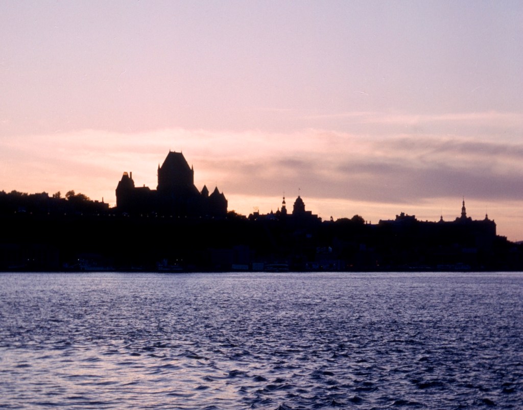Around July 1, Canada Day, I took the train from Niagara Falls to Montreal, and left the next day on a Cunard liner bound for Liverpool. As I remember, the ship took well over a week to arrive. The route up the St. Lawrence River and out of the Gulf of St. Lawrence took two days by itself. The ship didn’t stop in Quebec City, but it slowed down and took on passengers from a motor launch.