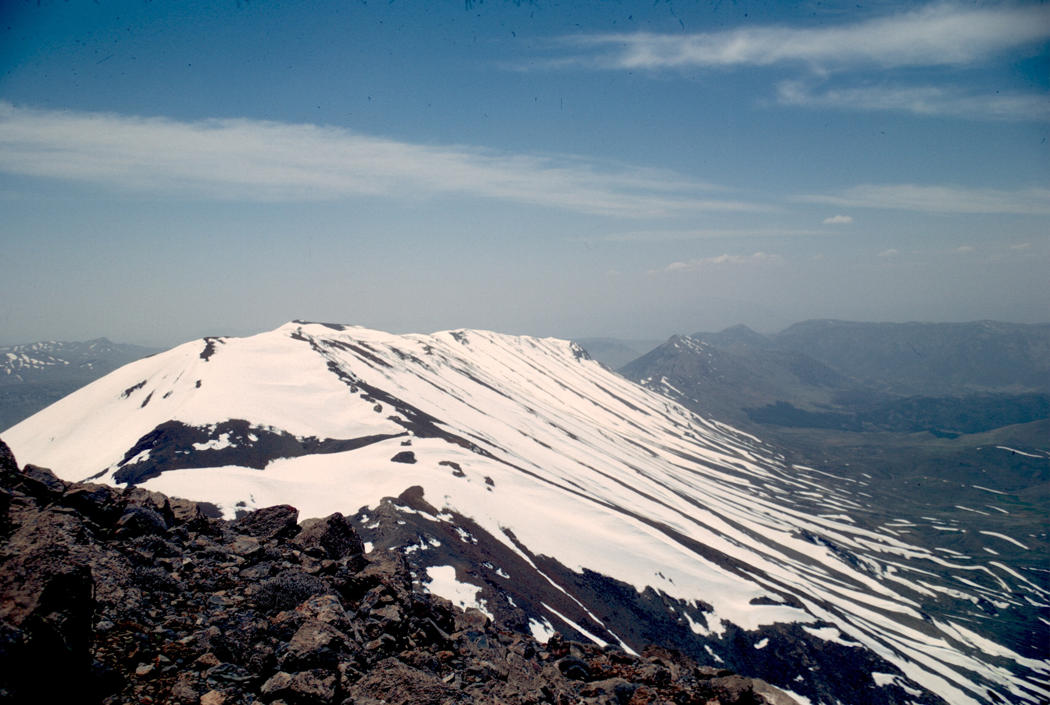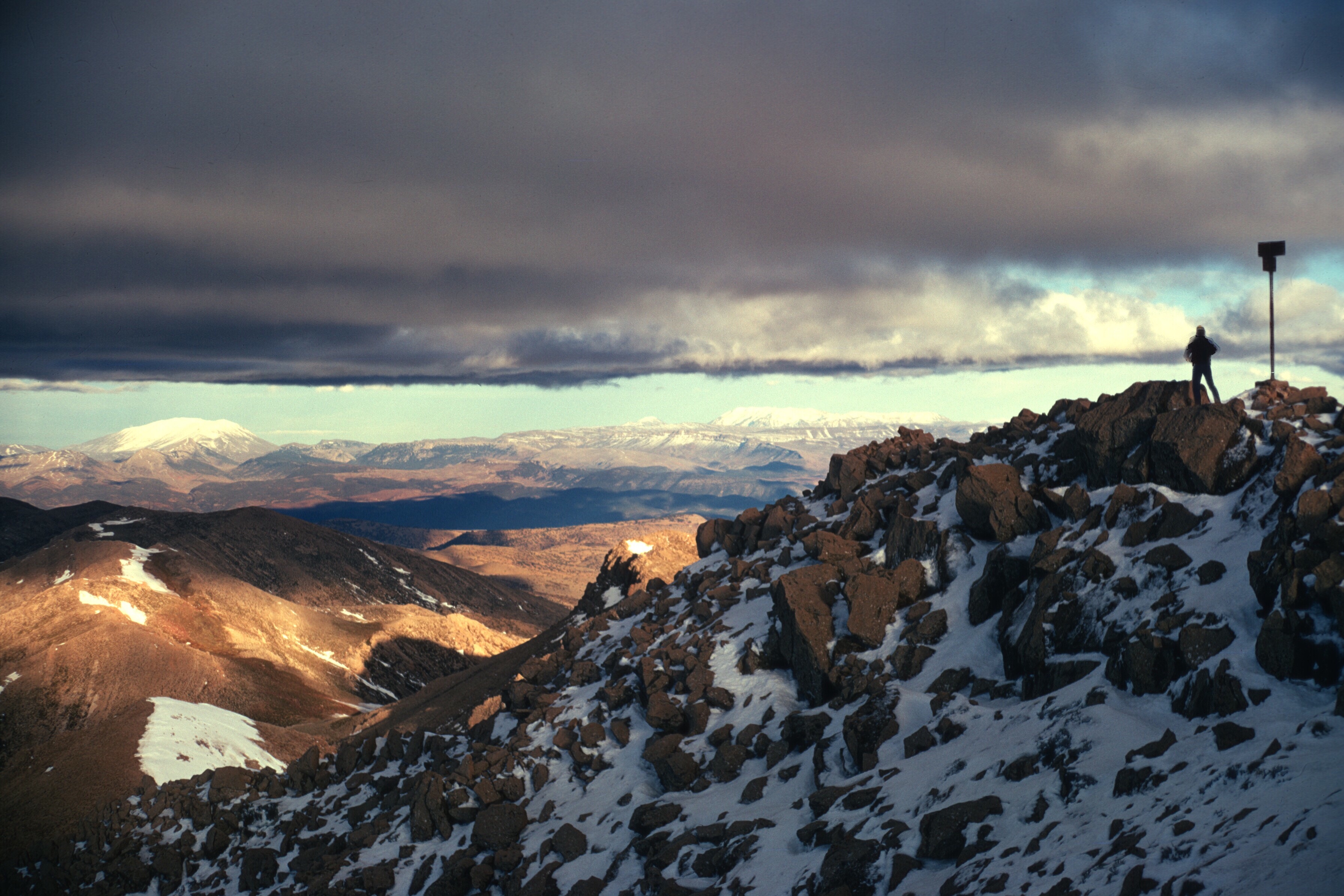 Gaylord Barr and Karin Carter and I climbed Tichoukt in the late fall, but the best ascent was with Louden in the winter. We approached from the south side of the mountain, climbed to the saddle, and just followed the ridge to the top where there was a geodesic marker.