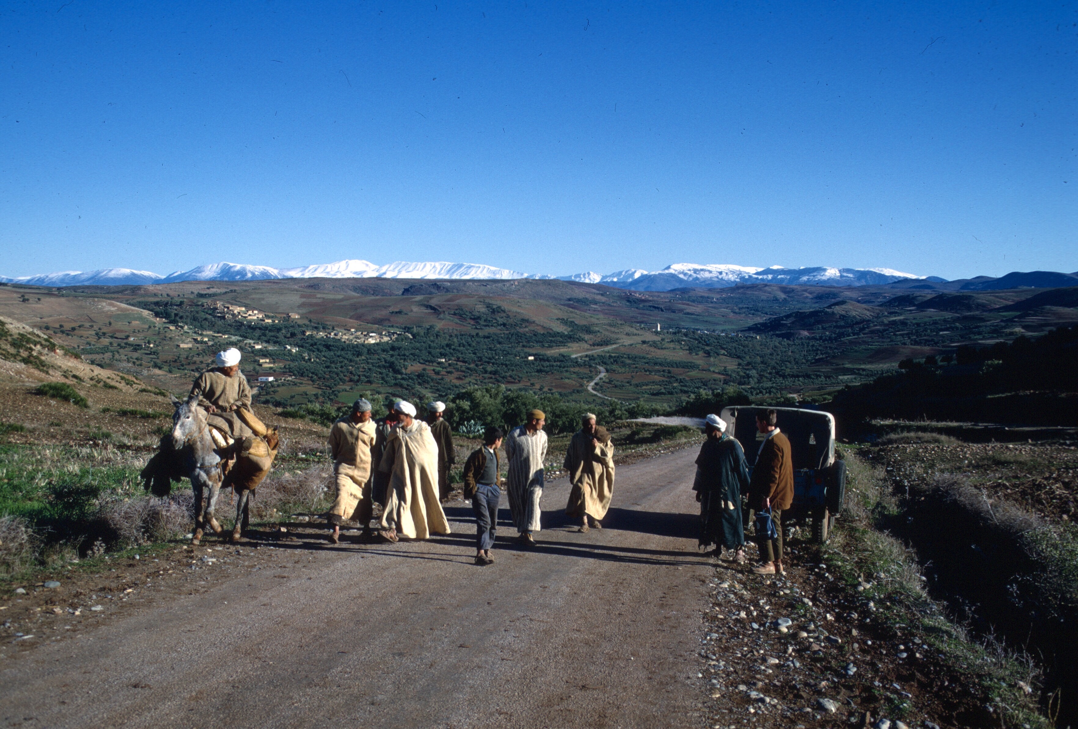 De nos jours, la population de la ville a connu une augmentation fulgurante, doublant depuis l’époque ou j’y ai vécu, et la zone bâtie s’est étendue bien au-delà des murailles de la vieille ville. Cette croissance a surpris Gaylord Barr qui a fait un arrêt à Séfrou lors de son retour de l’Arabie saoudite en 1997. Dans mon souvenir, les zones extra-muros, à l’exclusion de la ville nouvelle, se limitaient essentiellement aux quartiers de Derb el-Miter, Habouna et Seti Messaouda. Je fais cette digression sur la démographie et l’urbanisation de Sefrou avant l’étalement urbain pour souligner à quel point il était facile de sortir de la médina et, en quelques minutes, de se retrouver dans les jardins qui entouraient la ville. Le vendredi, les femmes se promenaient en groupes, leurs petits enfants à la main, pour pique-niquer dans les vergers, manger des fruits frais, prendre l’air et, bien sûr, bavarder autour d’une tasse de thé. J’ai apprécié la proximité de la campagne et je faisais fréquemment des promenades au village avoisinant de Bhahlil, célèbre pour ses habitations troglodytiques.