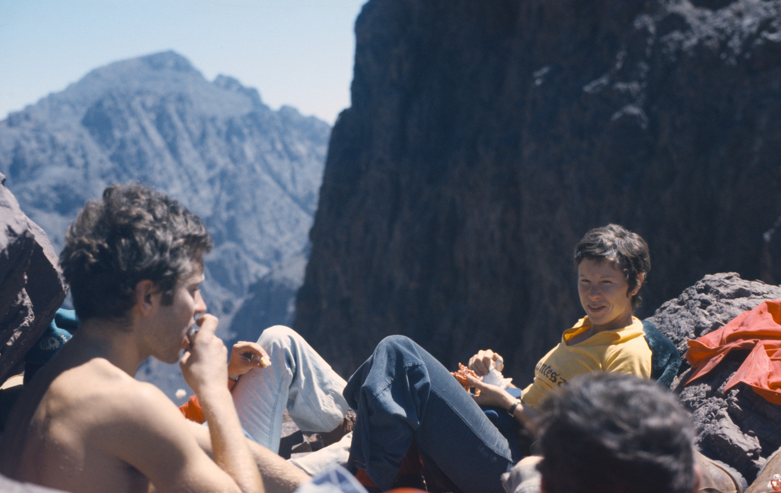 We went up to the summit of Tichoukt three times. The first climb was memorable, because the soles on my boots fell apart. I had given them to Jim Humphrey, living in Rabat at the time, to have them resoled. The shoemaker put the soles on perfectly, but the rubber was so soft that the limestone tore it to shreds. I had hardly any soles left when we returned!