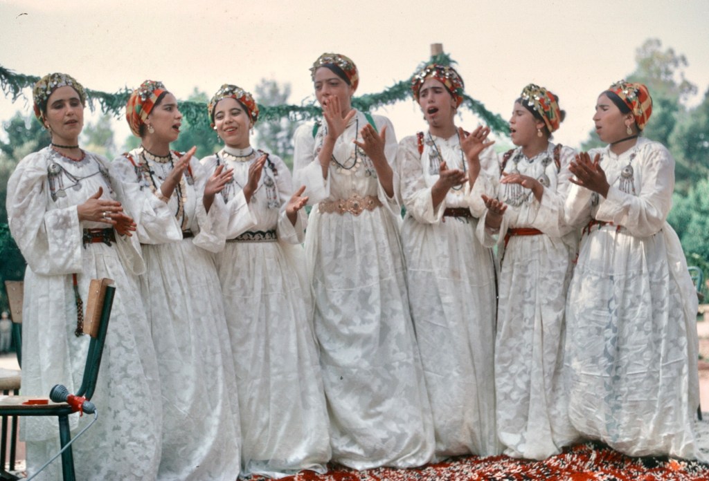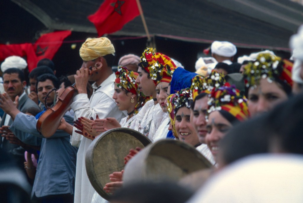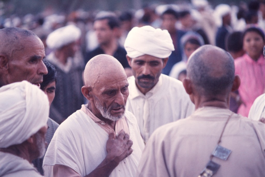Danseurs professionnels du Moyen Atlas. D’après de nombreux Marocains, la danse ne constituait qu’une de leurs professions.Photo prise par Gaylord Barr. 1968Les danseurs avec un musicien, à l’extérieur de la tente des notables. 1968Danser pour la foule. Photo par Gaylord Barr. 1968Les spectateurs 1968