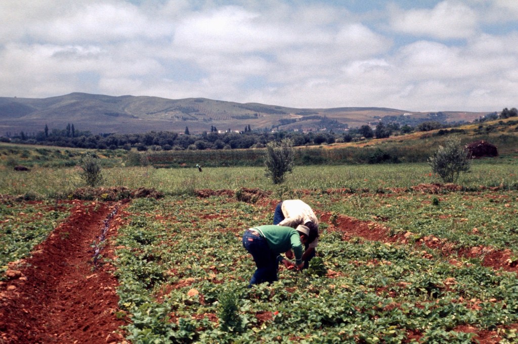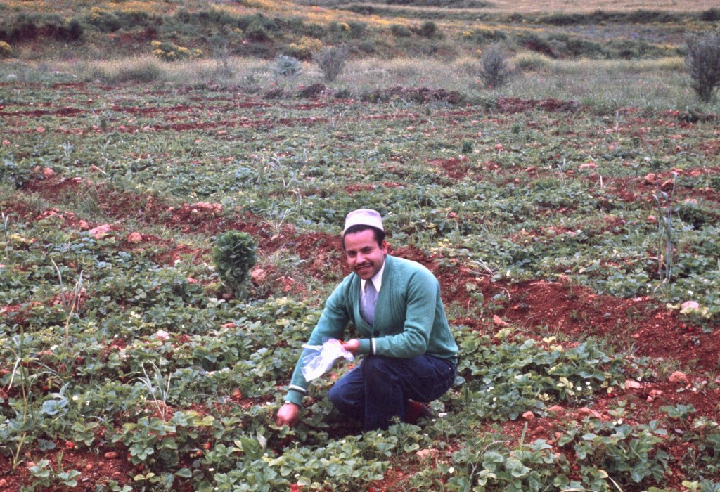 Cueillette de fraises au printemps. 1968Ce champ se trouvait seulement à quelques minutes de marche de la médina. 1968Cueillette de fraises avec Mohammed Chtatou et Ali Azeriah. À noter les oliveraies. 1970