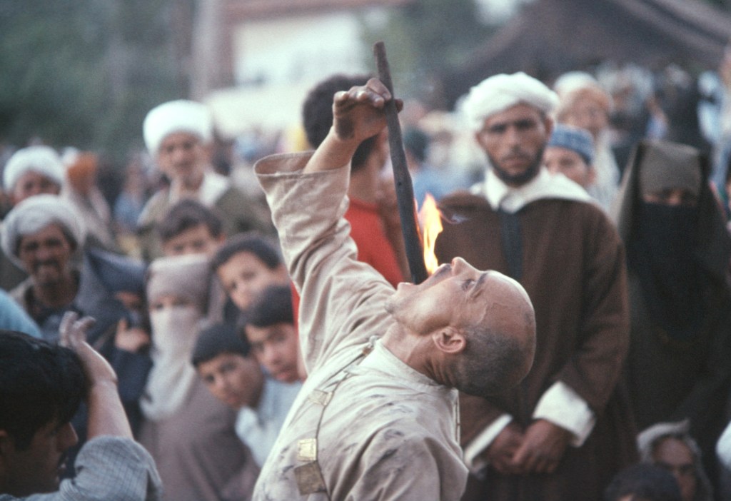 Eating fire, being bitten by snakes, and dancing into a trance. Sefrou, 1968.
