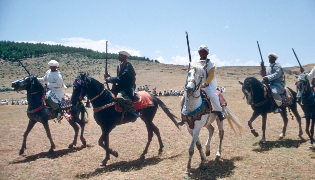 The festival traditionally lasted three days, though I only remember one day. The following year, 1969, I may have been away during the festival. In 1970, I once again attended. That year there was a fantasia, a traditional display of powder play and horsemanship—the only one that I ever witnessed while living in Morocco. Well, the only one with horses, because at Moulay Bouchta a procession armed with old muskets walked to the space before the shrine and put on an impressive display.