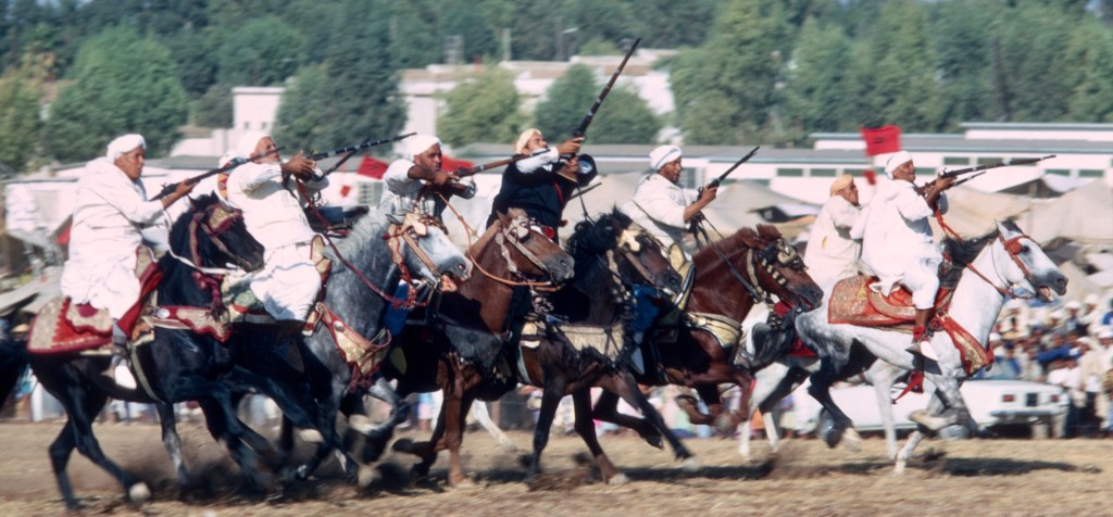 Jeu de poudre devant le sanctuaire à Moulay Bouchta 1970