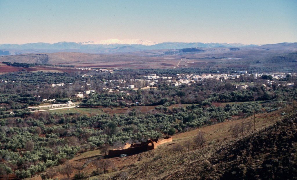 Vue du village de Bhalil vers le sud, en direction de la plaine du Saïs et de Fes. 1969