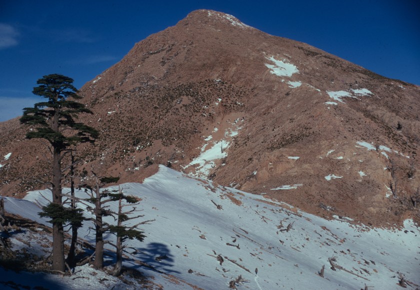 Gaylord Barr and Karin Carter and I climbed Tichoukt in the late fall, but the best ascent was with Louden in the winter. We approached from the south side of the mountain, climbed to the saddle, and just followed the ridge to the top where there was a geodesic marker.